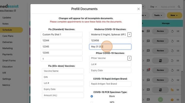 3. Choose your vaccine, enter Lot # and Expiry Date