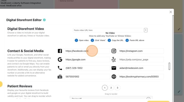 Add your fax number, email, and/or social media links to your digital storefront to provide essential information to patients, clinics, and your community at a glance.