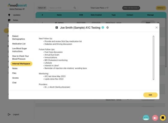 Alert! Internal Workplace is for pharmacists only! It is NOT shared with patients.