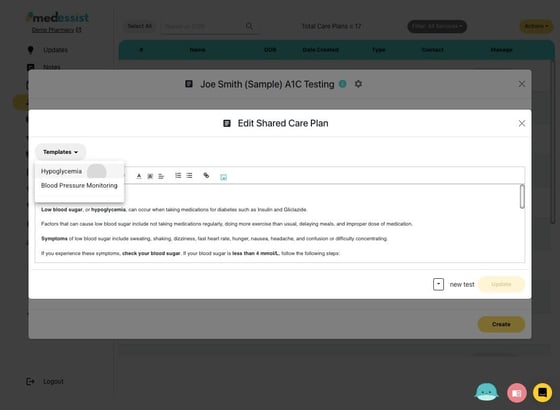 Alternatively, you can click "Templates" to quickly re-use a care plan template
