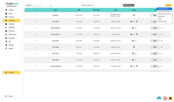 MedCard is the default care plan. However, you can customize and make different care plans to your liking!