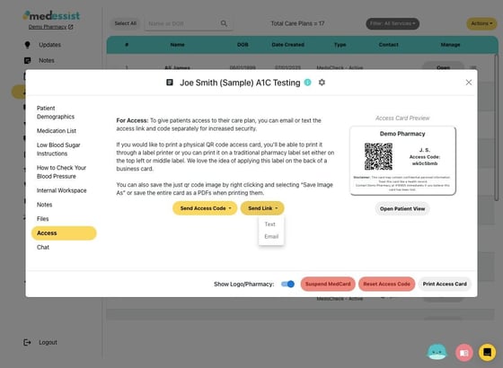 Alternatively, you can print a card for your patient if they want a physical card by clicking "Print Access Card"