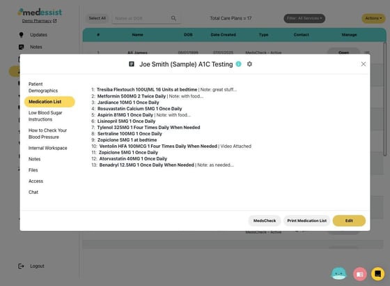 5. Click "Medication List" to view a list of all the medications the patient is taking