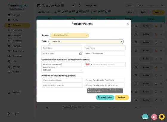 3. Select Type: "MedCard" from the drop-down menu and manually enter patient information