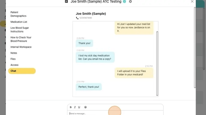 9. Two-Way Messaging: Patients and providers can use the Chat feature to communicate directly through the care plan interface.