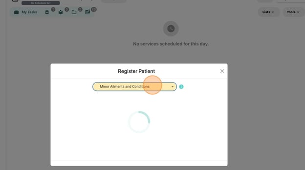 - Click 'Select a Service' and select the "Minor Ailments and Conditions" option.