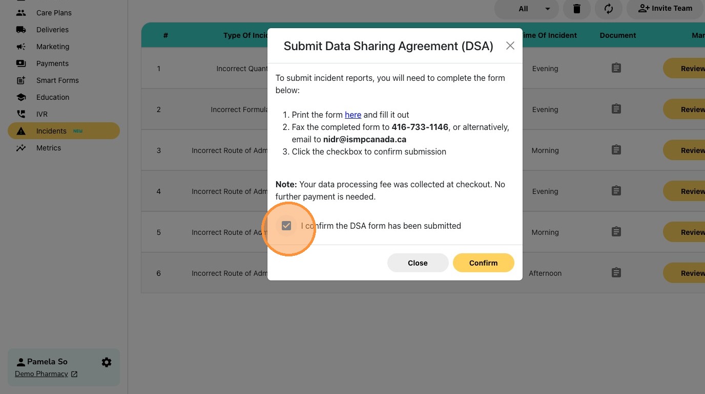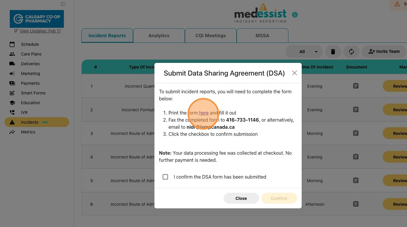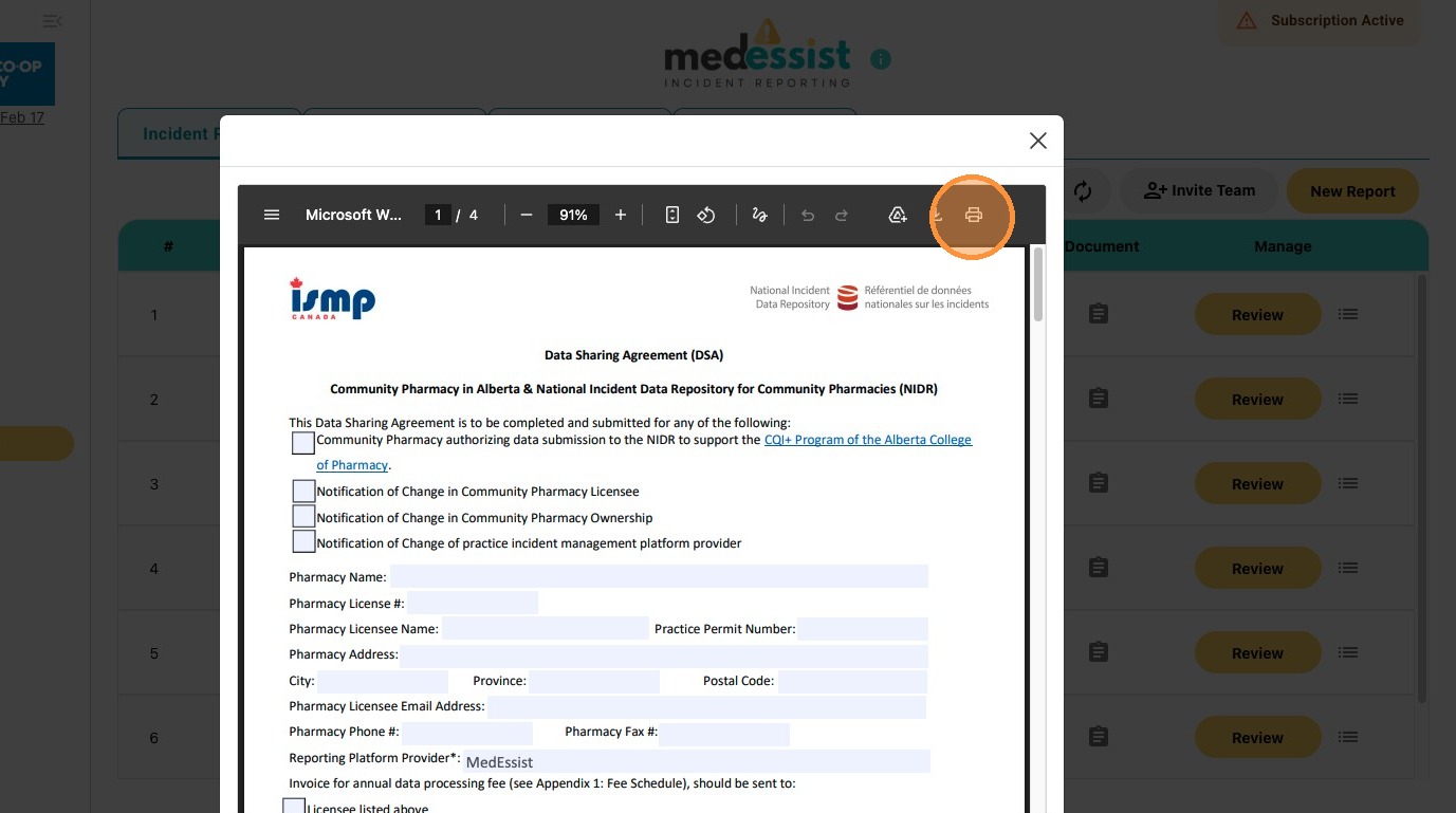 Learn how to complete your province's Data Sharing Agreement as a first step to compliance. This allows MedEssist to submit your incidents to the NIDR.