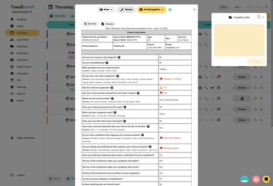 2. Click "Handout" to create a custom-branded patient-friendly follow-up document! The PDF will open in a new tab to be printed, saved, or shared.