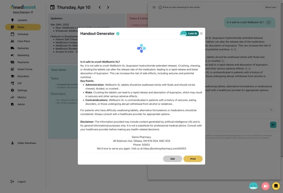 Create patient-friendly handouts for simple to complex questions in just a few seconds using MedEssist's Lumi AI!
