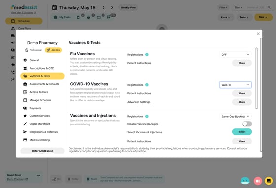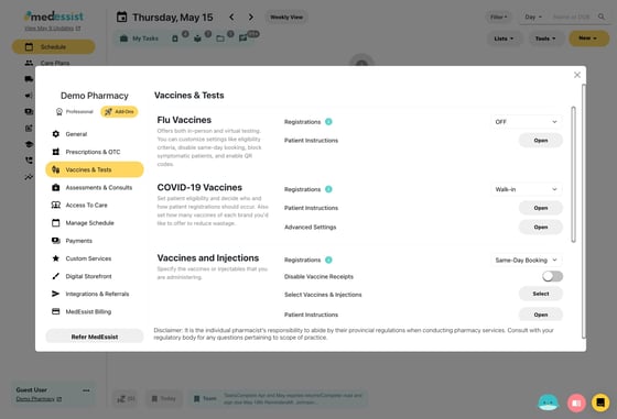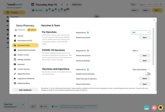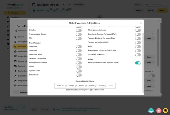 Fine tune the vaccine and injection types you offer at your pharmacy, and add custom injections/vaccines that patients can register and complete documentation for.