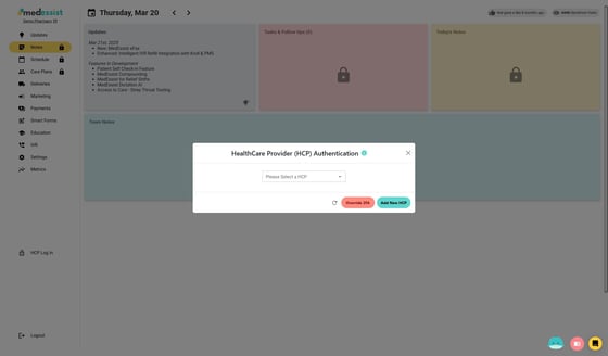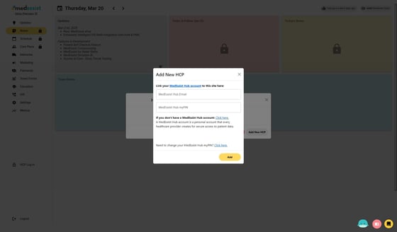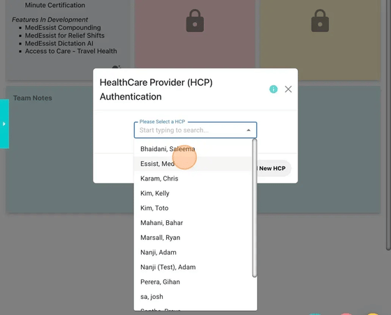 1. Login at https://app.medessist.com/home, then click "Add New HCP."