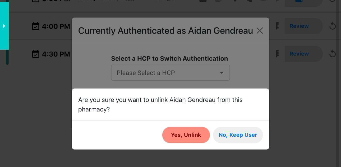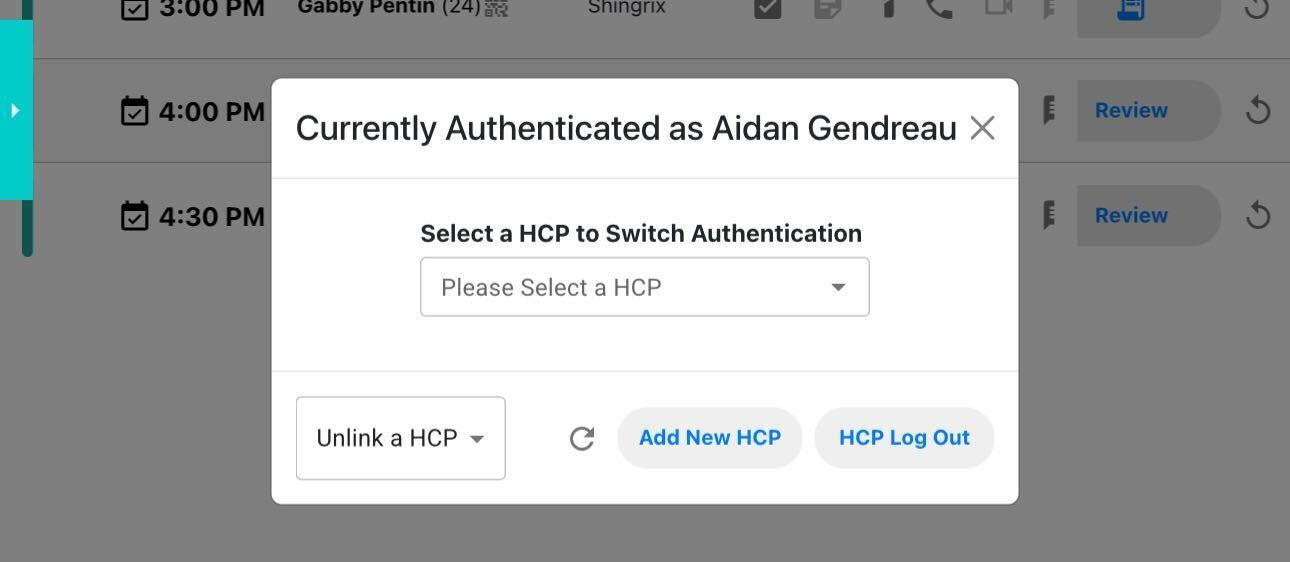 To unlink an HCP from your MedEssist account, simply click the three dots next to your name in the bottom-right corner (once logged in and authenticated), then click Switch HCP. Next, click ‘Unlink a HCP’ to view a dropdown list of all linked HCPs. Select the HCP you wish to unlink, then click ‘Confirm’!