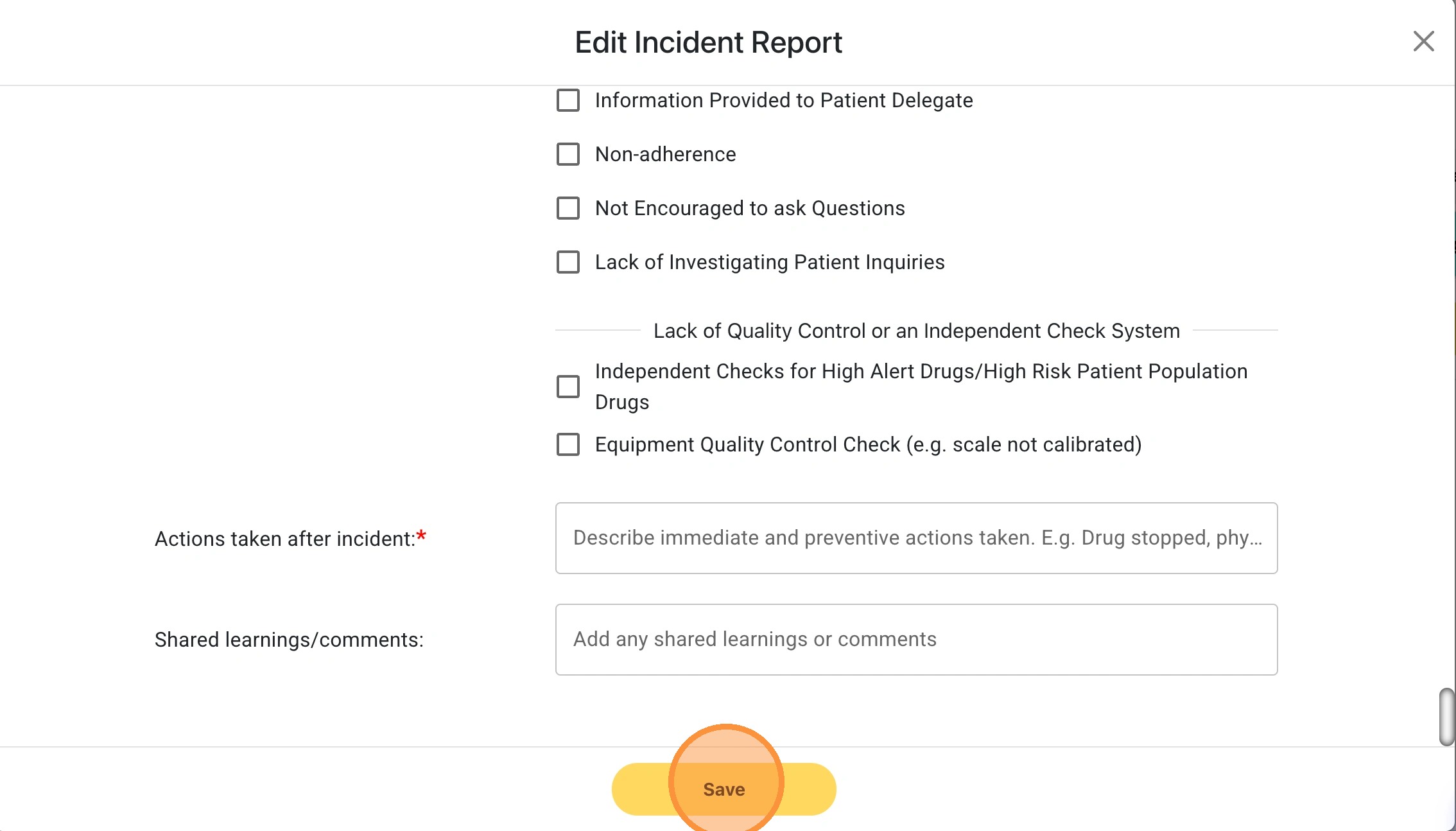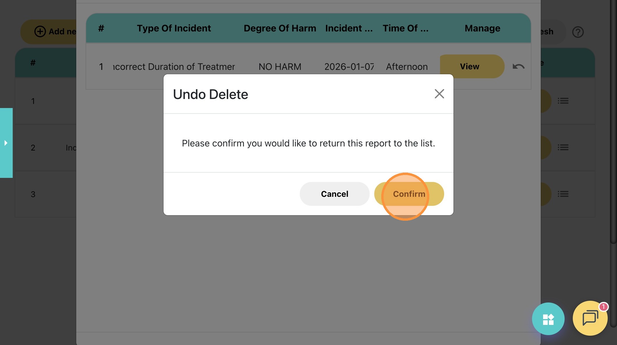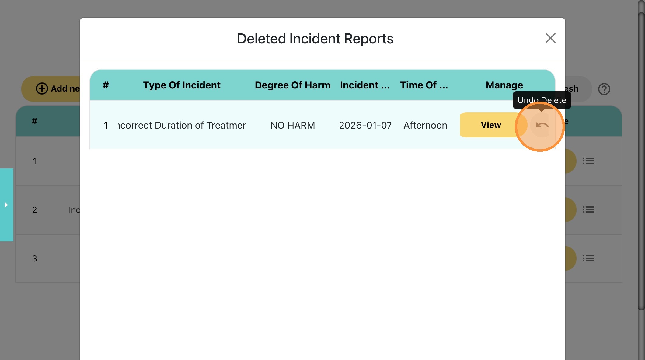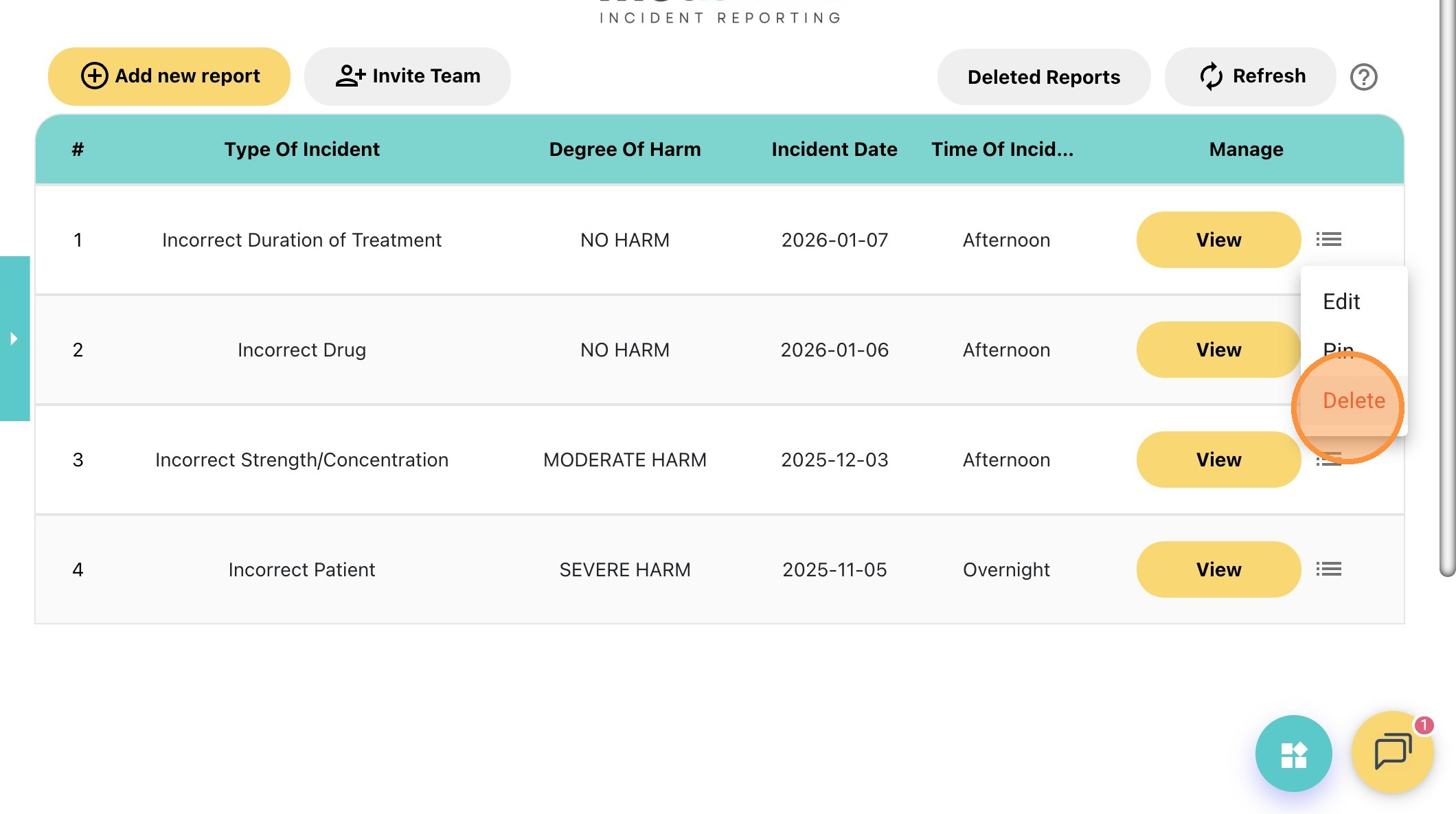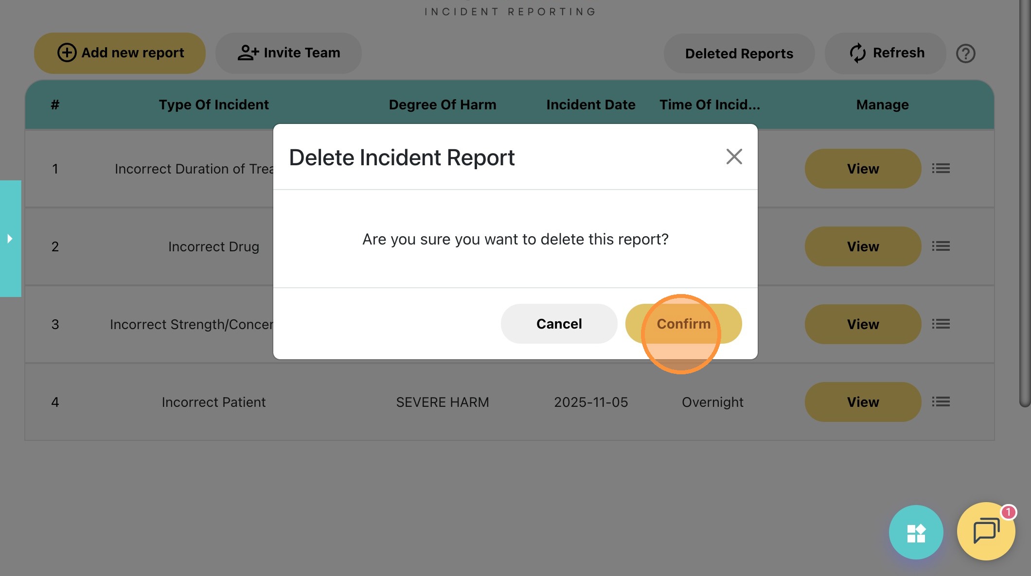 29. Click "Delete" to remove the incident report.