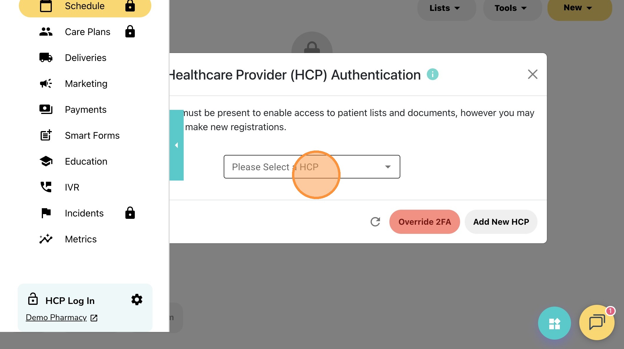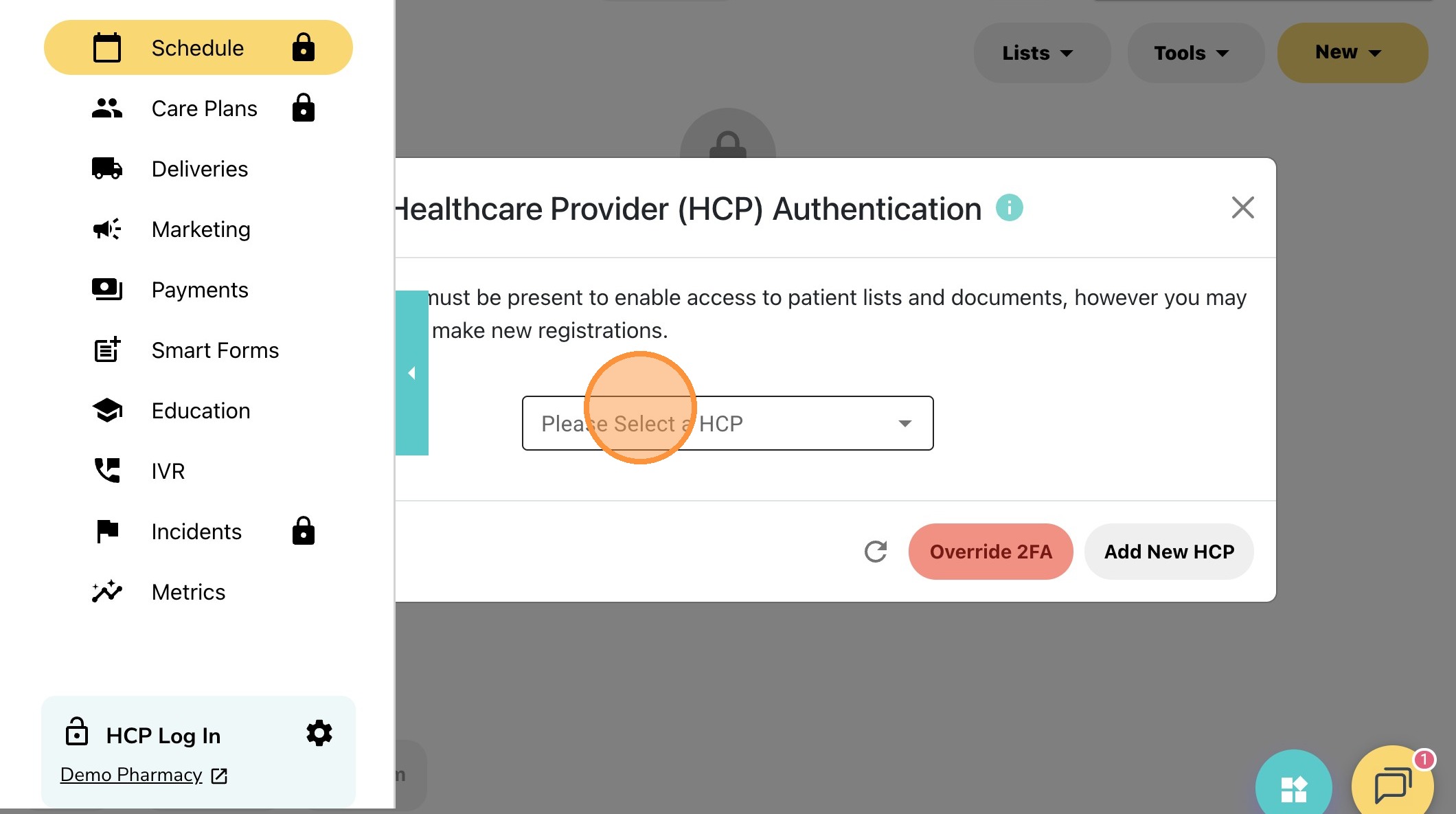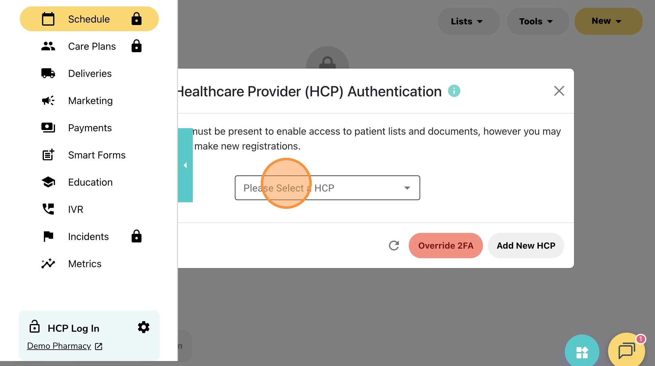 3. Click the "Please Select a HCP" and login using your PIN