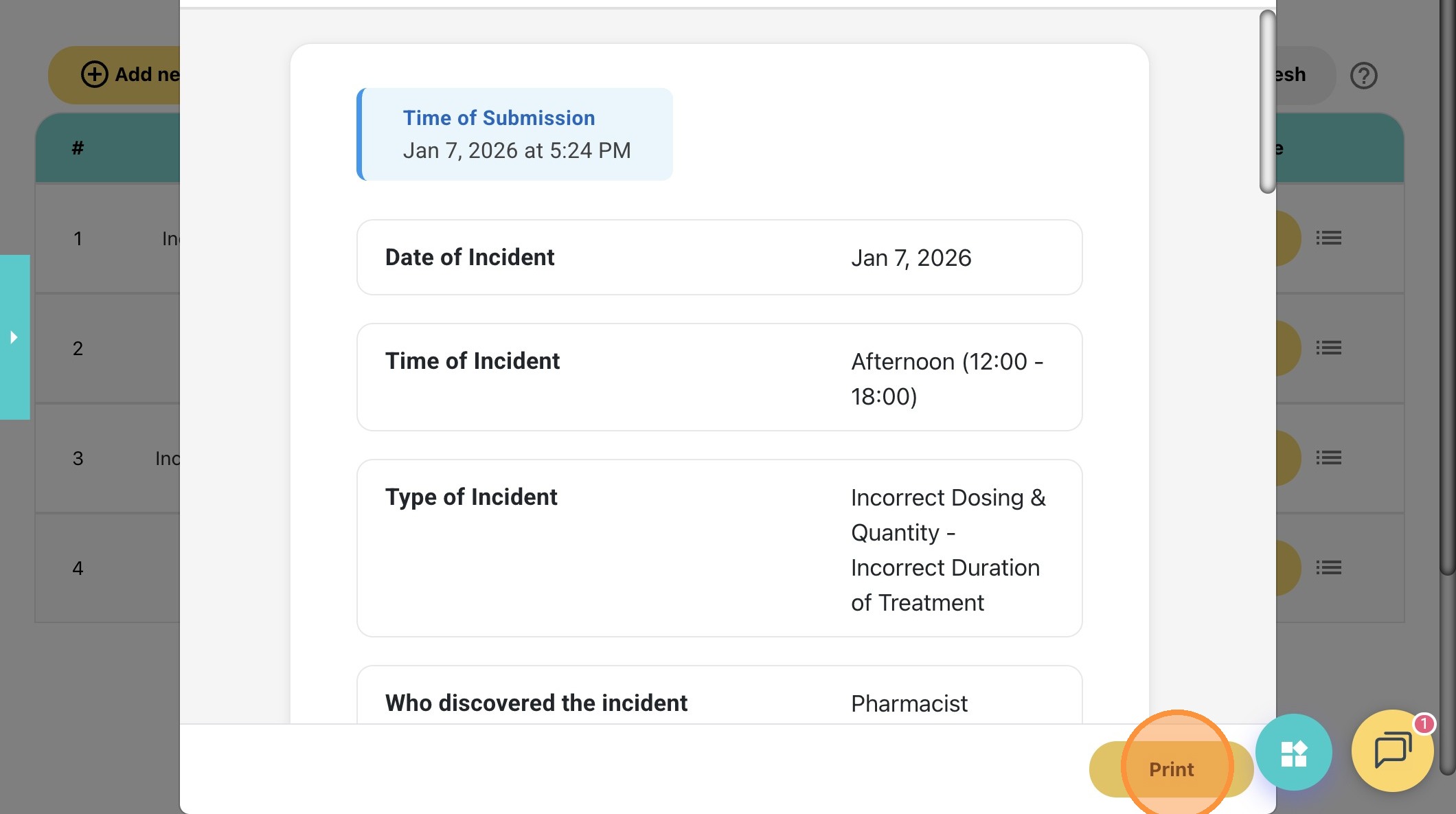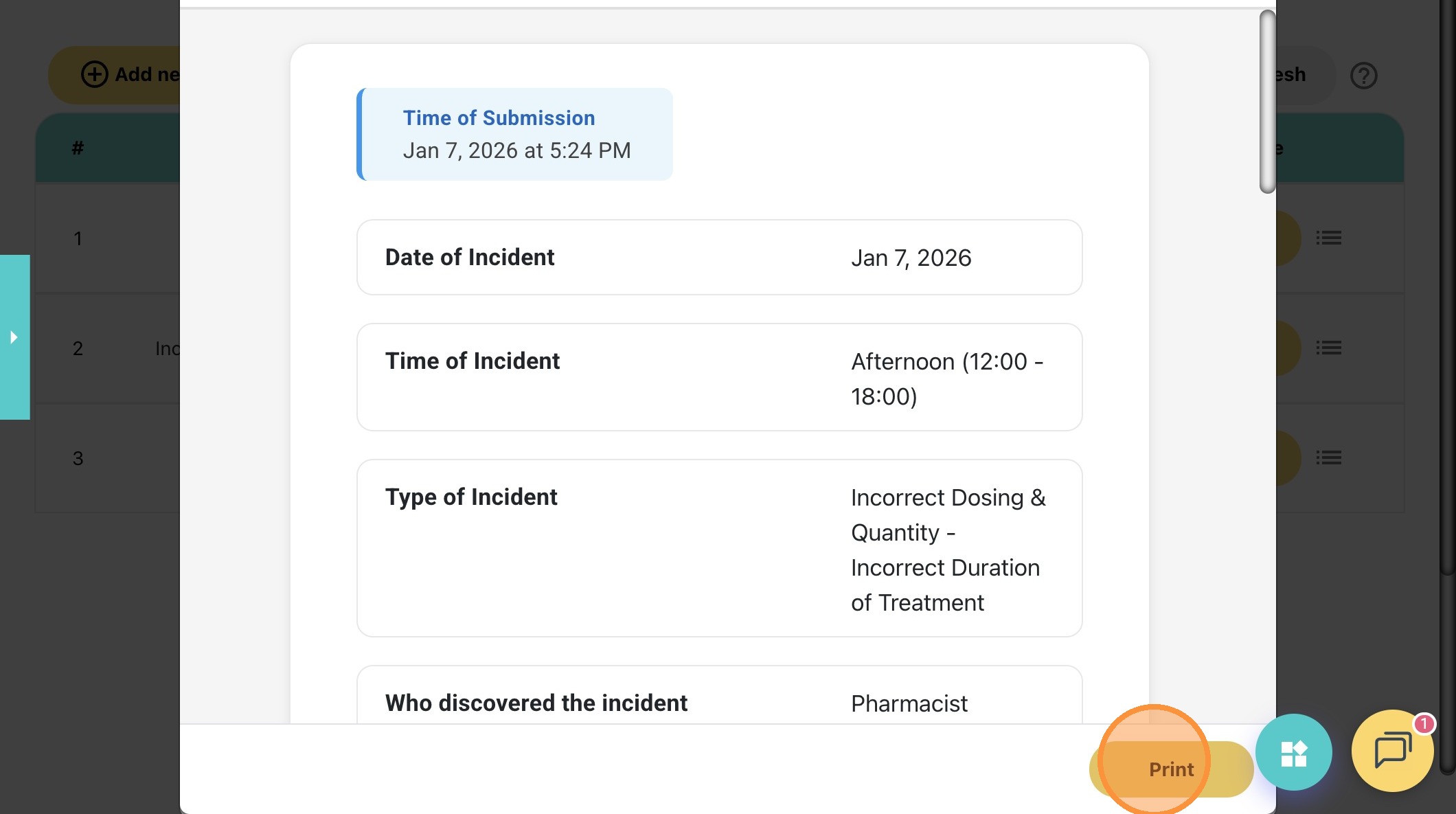 4. After logging in, head to the navigation bar on the left and click on "Incidents". Your submitted report will appear in the list.