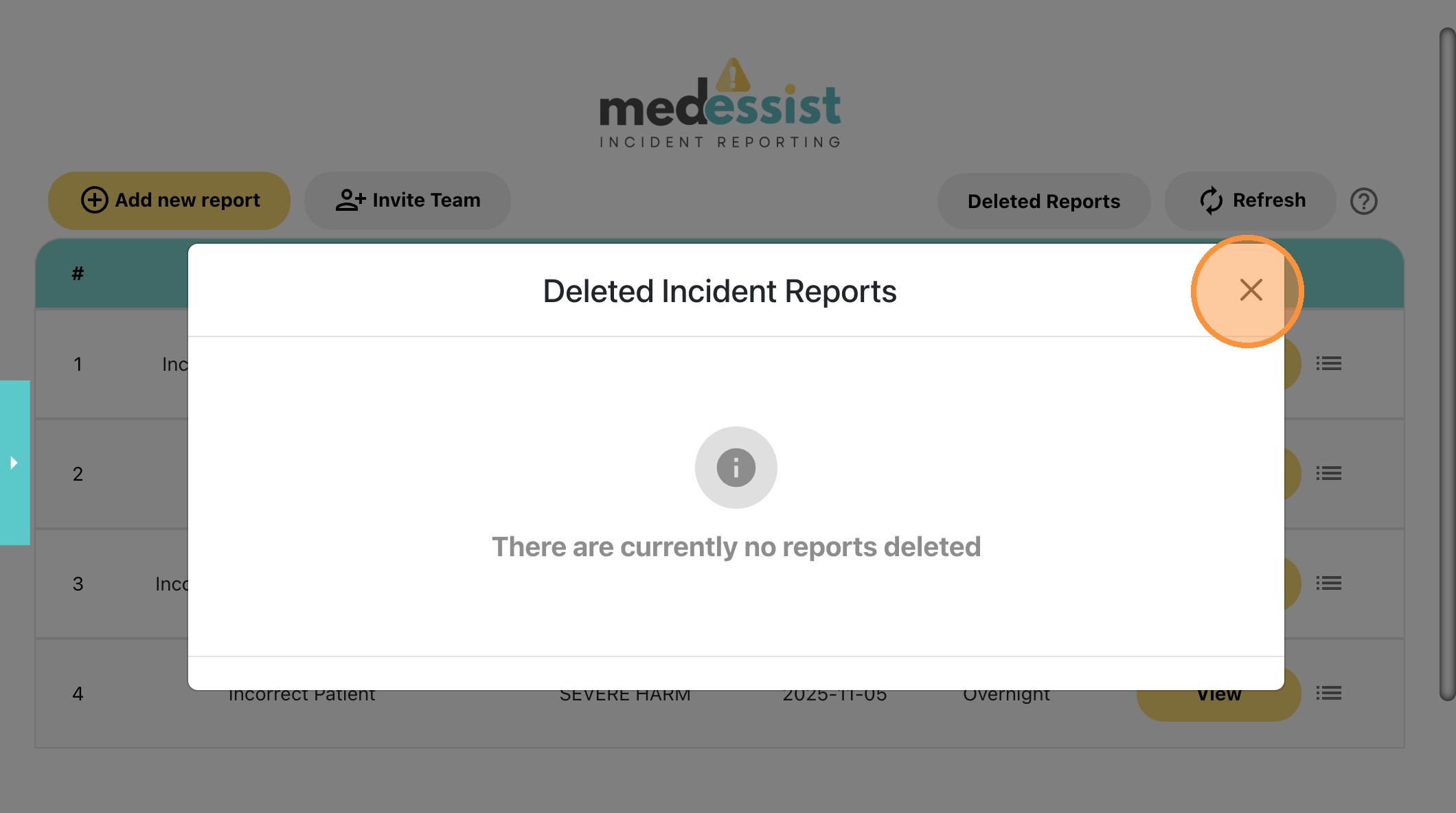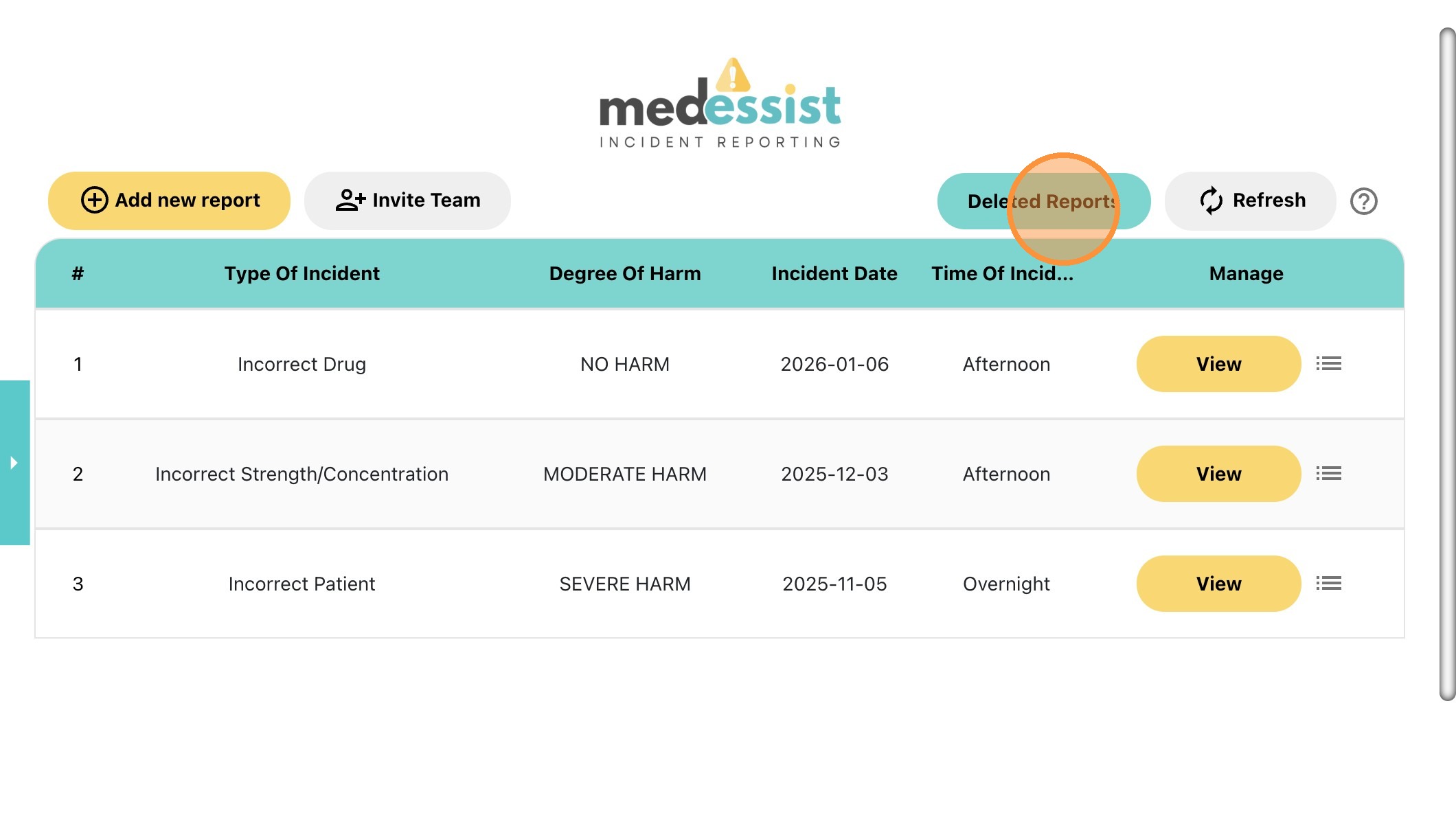 35. On the Incidents tab, click "Deleted Reports" to view reports that have been removed.