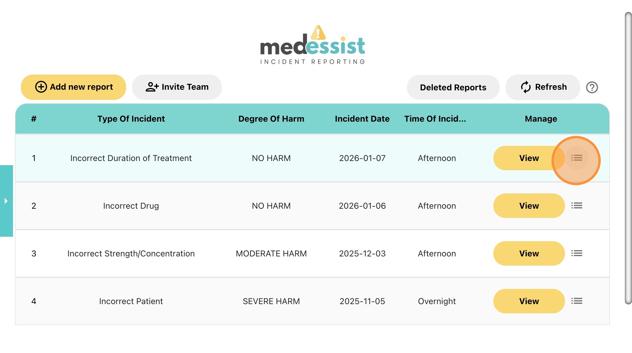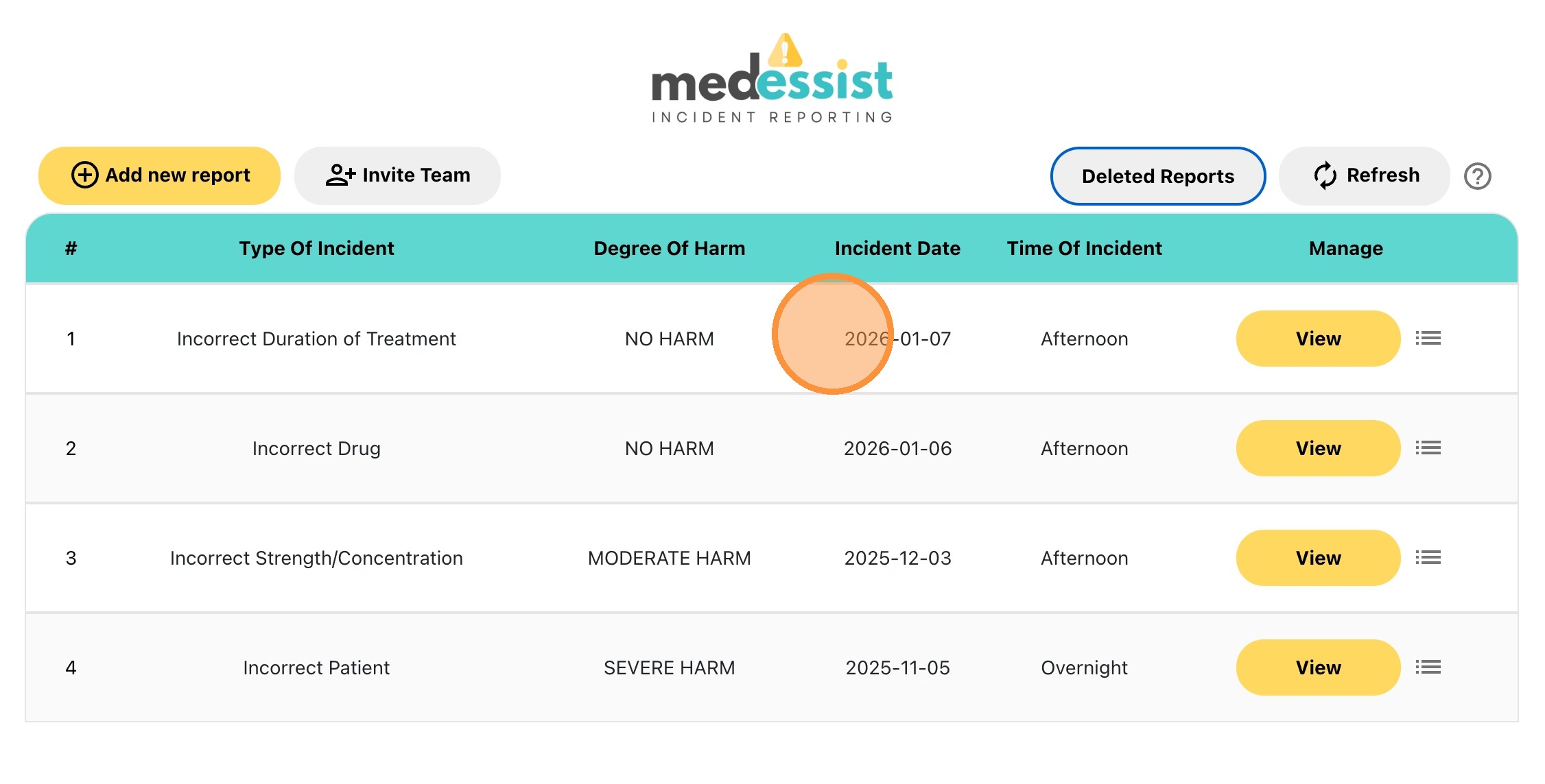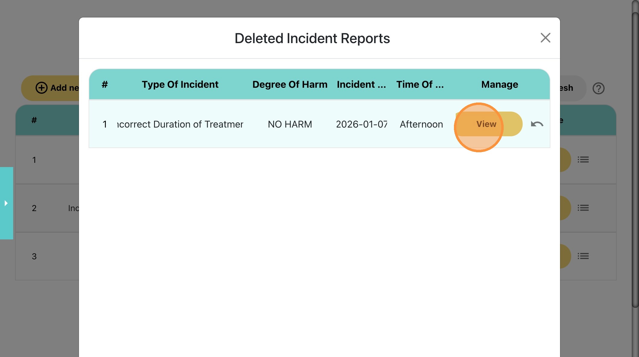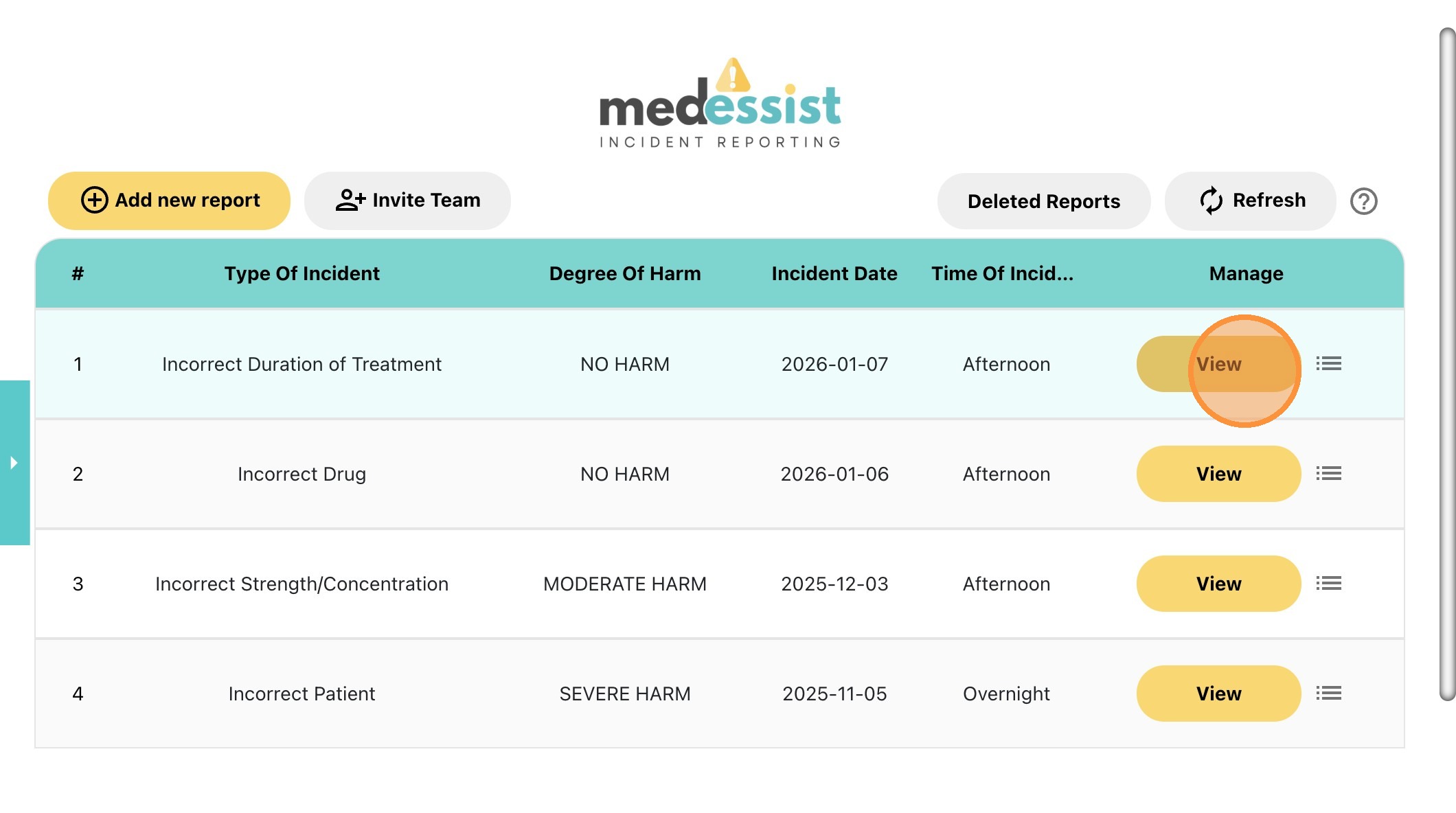5. Locate the incident report that you would like to open, and click "View"