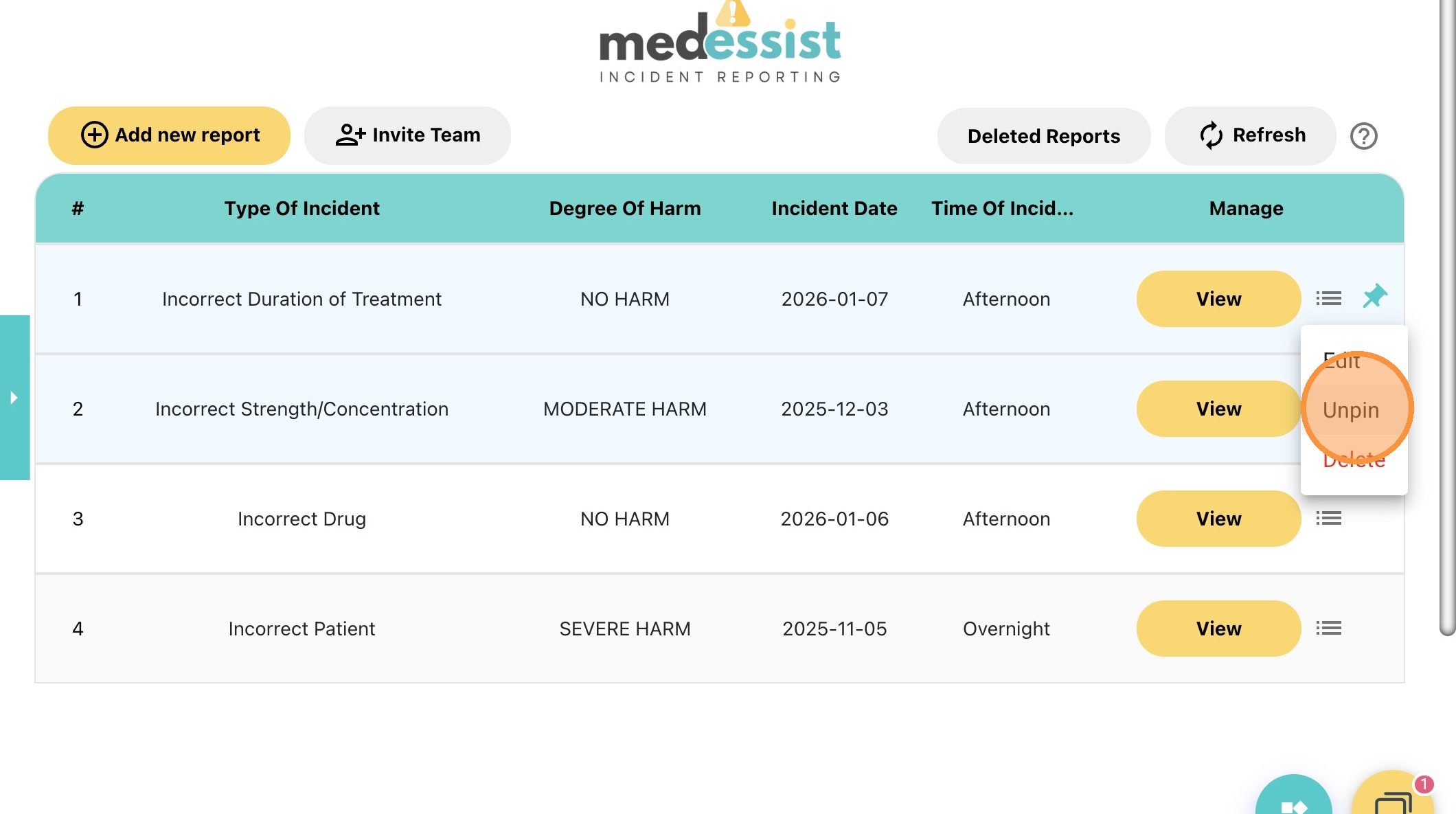 23. Unpinned incident reports will return to their original position.