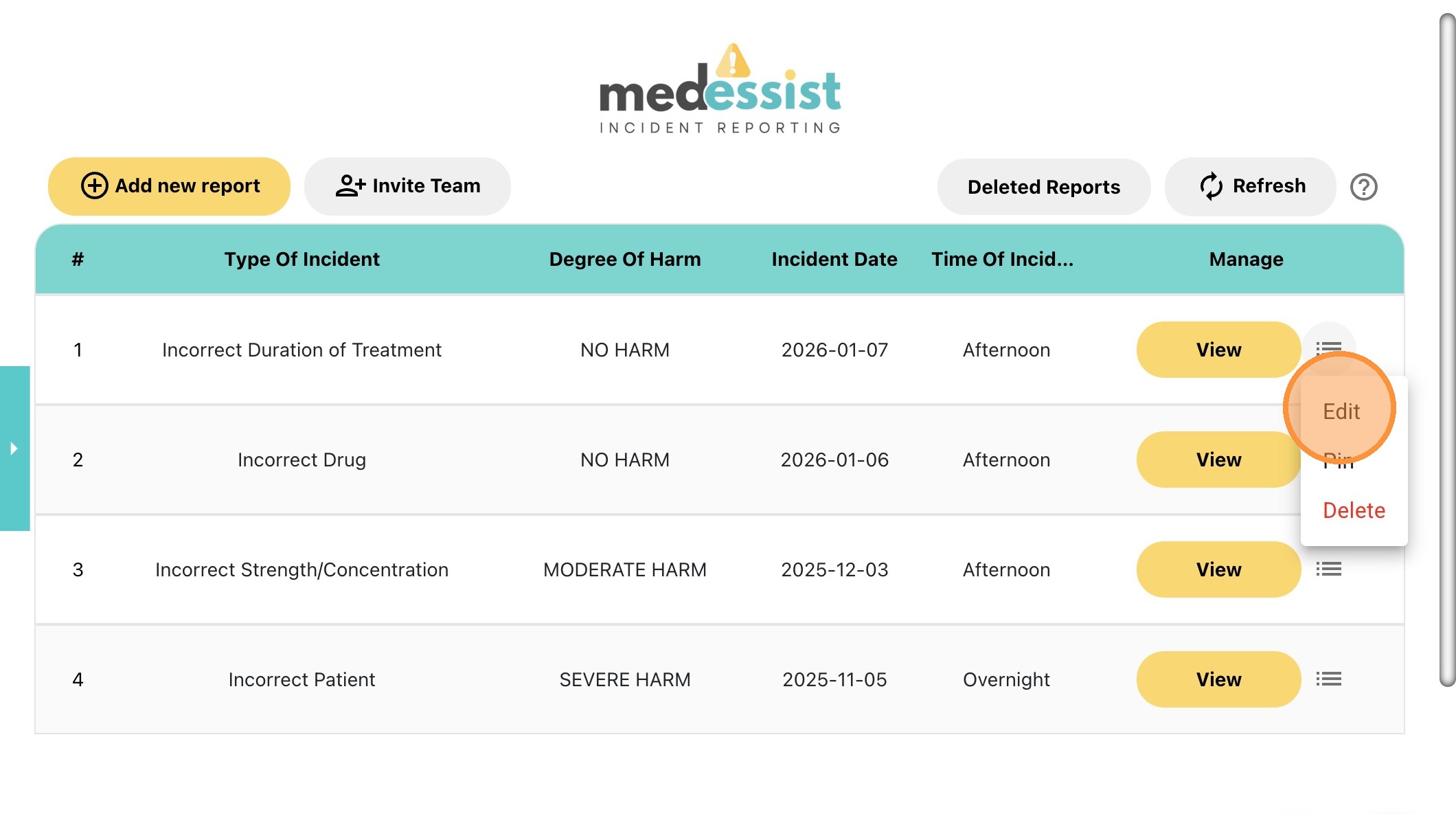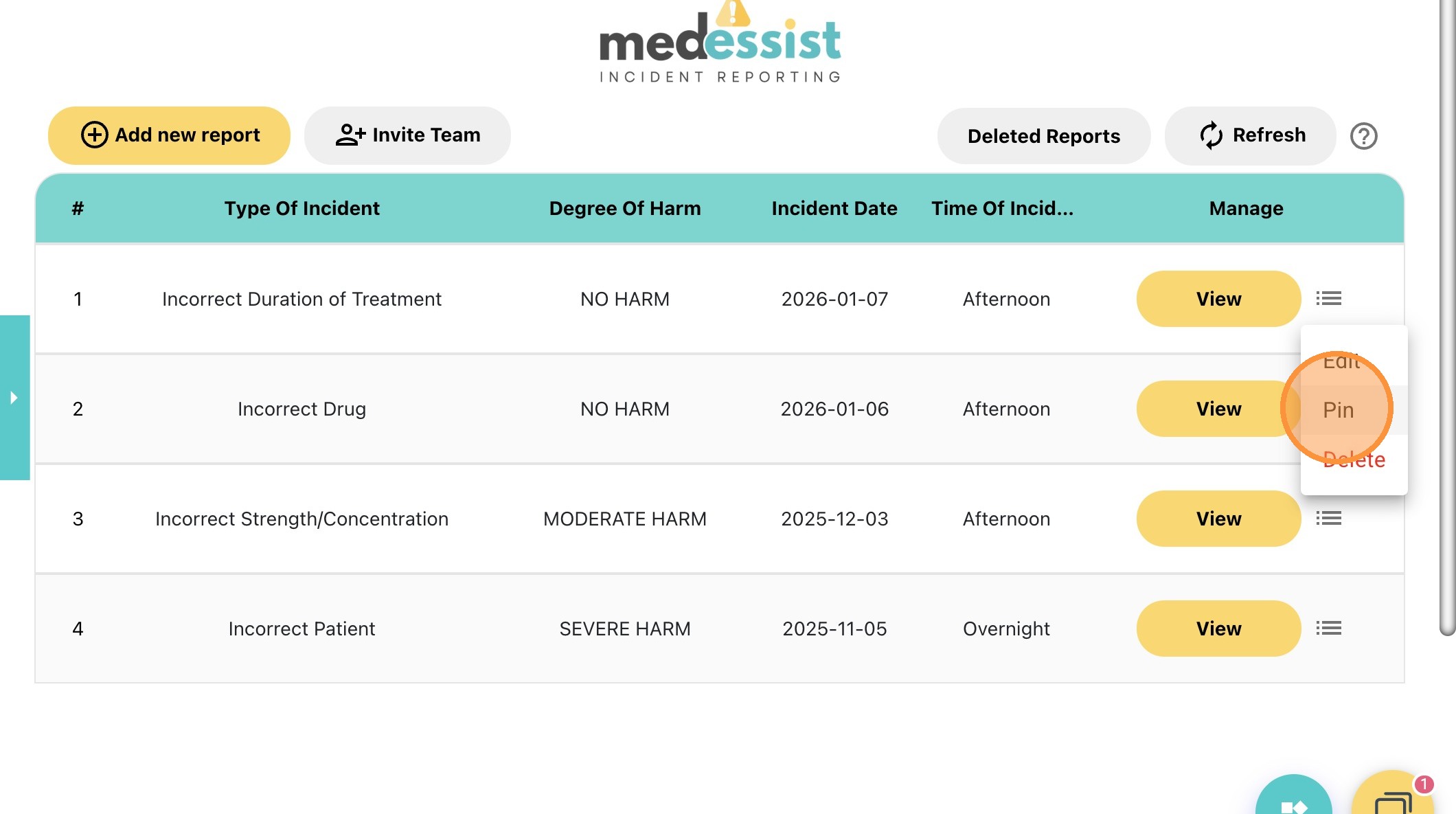 Learn how to view, edit, pin, delete, and restore existing incident reports.