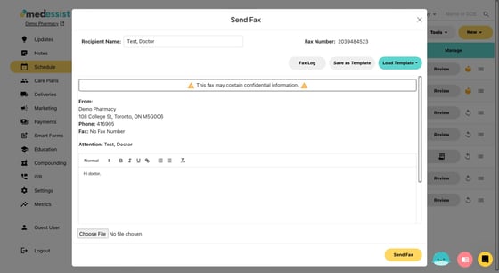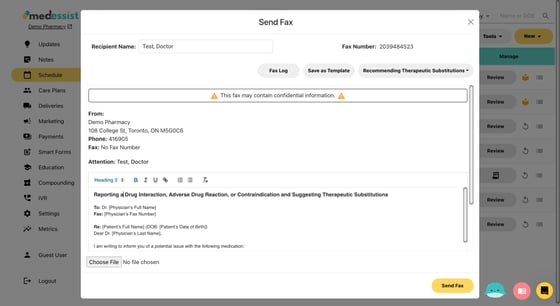 Create and send faxes to any other providers in a few clicks with MedEssist! You can also save time and fax documents directly into your PMS (requires a fax-enabled PMS)