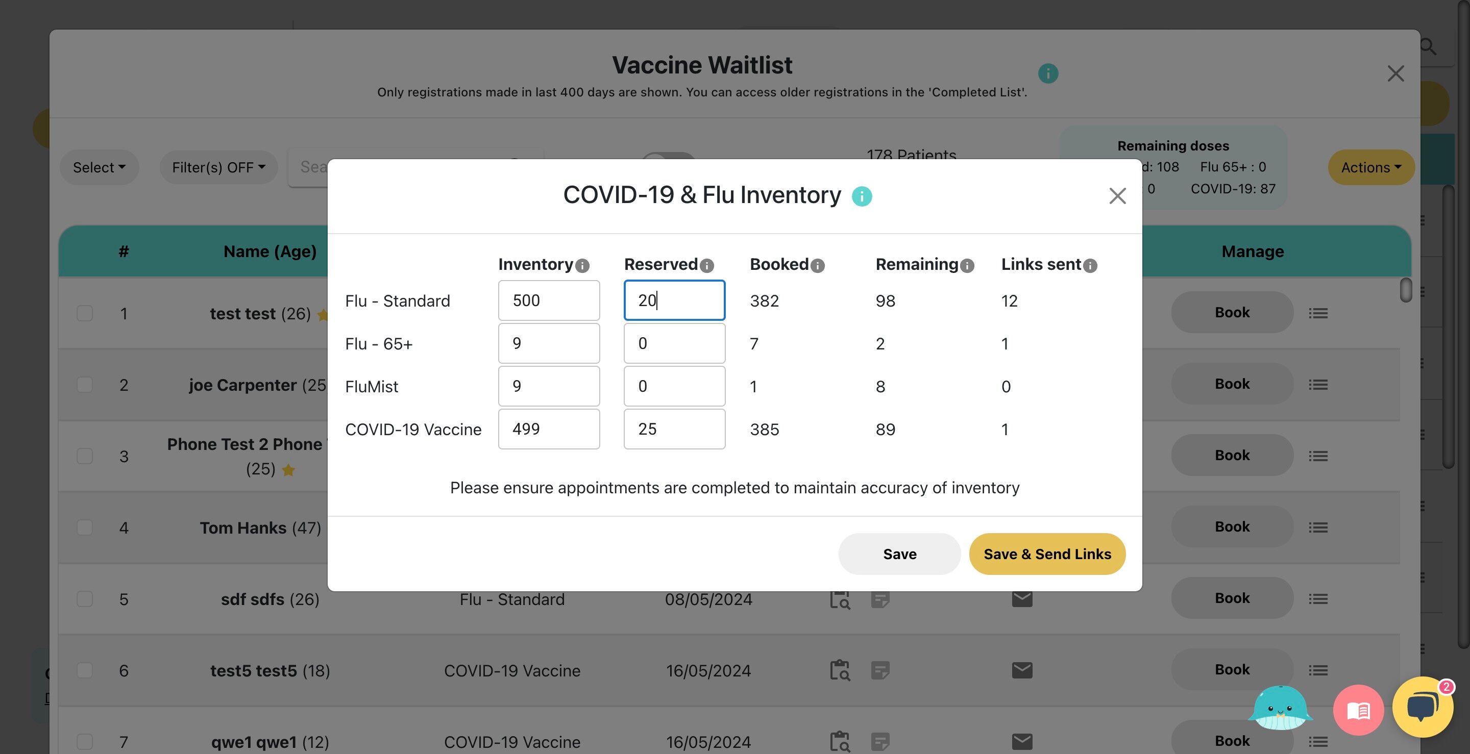 9. If you already have an existing waitlist, you can click "Save & Send Links" to automatically send out booking links now (see details below).