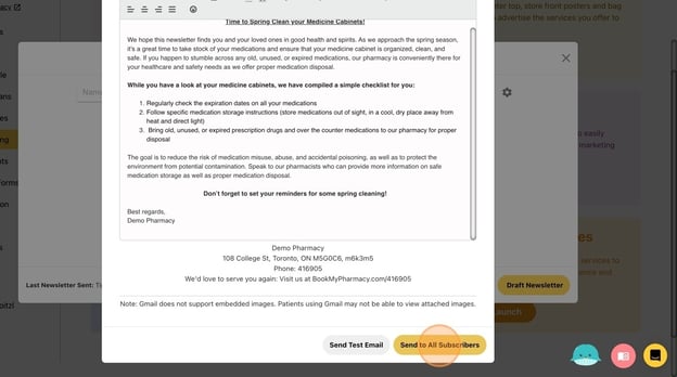 - Once your Newsletter is finalized and the test email worked, click "Send to All Subscribers"