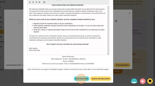 - We suggest sending a test email to yourself before sending the newsletter to all of your subscribers