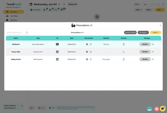 12. Once the transfer has been successfully completed, click "Resolve" to clear the notification from your prescription inbox and notify the patient their medication is ready (if the patient submitted contact information).