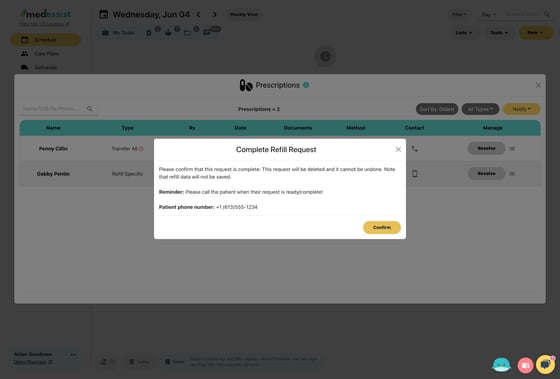 17. Notify the patient if applicable, then click "Confirm" to clear the request.