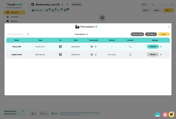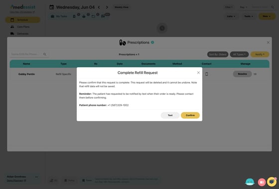 16. Once the refill has been successfully completed, click "Resolve" to clear the notification from your prescription inbox and notify the patient their medication is ready (if the patient submitted contact information).