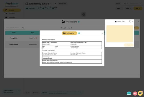 9. New patients requesting to transfer in their medications will also appear in your inbox. Click the clipboard icon to view patient information, details of their previous pharmacy, as well as any additional requests if applicable.