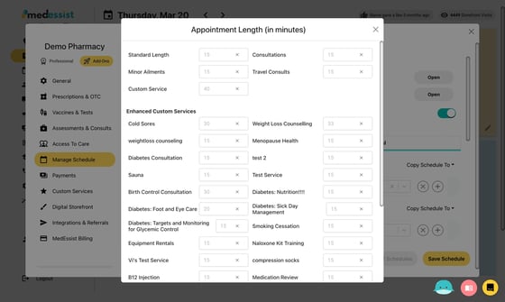 4. The appointment duration for specific services/ailments can be adjusted by clicking "Open" beside Appointment Lengths