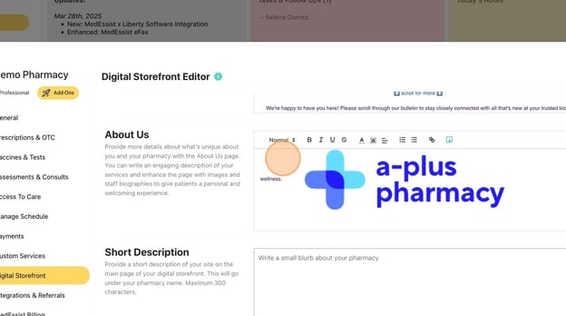 Provide more details about what’s unique about you and your pharmacy with the About Us page. Write an engaging description of your services or provide staff biographies to give patients a personal and welcoming experience.