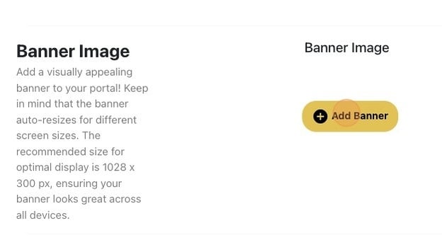 Add a visually appealing banner to your portal! Keep in mind that the banner auto-resizes for different screen sizes. The recommended size for optimal display is 1028 x 200 px, ensuring your banner looks great across all devices.