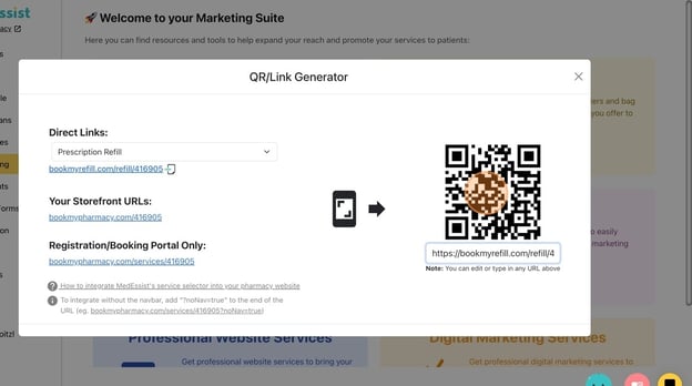 Tip! Once the service you want is selected, a QR code will automatically generate for that direct link.